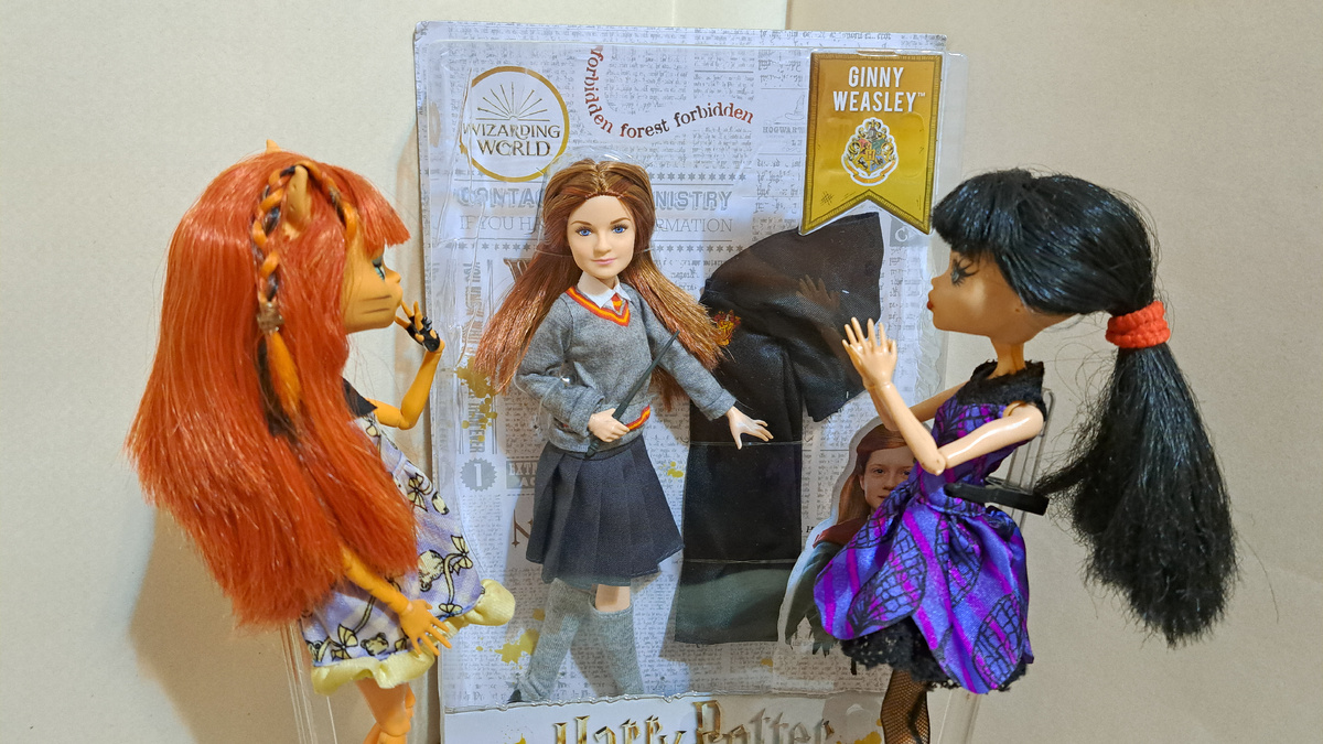 Всем привет! 14 ноября у нашей Саны был день рождения - и на этот праздник, хоть и с опозданием, приехала новая подружка. Джинни Уизли очень красивая, умная и весёлая девочка. Она привезла с собой свою волшебную палочку и мантию с гербом факультета Гриффиндор. Джинни сразу же нашла себе лучших подруг - близняшек Луну и Полумну Лавгуд. Гарри тоже обрадовался появлению подруги с Гриффиндора. Эта четвёрка друзей точно сможет придумать много забавных розыгрышей. А ещё Джинни подружилась с близнецами Хитом и Брайаном, которые напомнили девочке её старших братьев - Фреда и Джорджа. Санчез из Кофейной Конторы тоже счастлива - Джинни похожа на неё, как младшая сестрёнка. А после знакомства Сану ждал сюрприз - новенькая привезла ей подарок. Это оказались очень красивые закладки с персонажами "Гарри Поттера" - профессором МакГонагалл, профессором Дамблдором и Добби. Сзади на закладках написаны заклинания и как они действуют. Очень полезные шпаргалки для сдачи экзаменов😁 Мы очень рады, что
