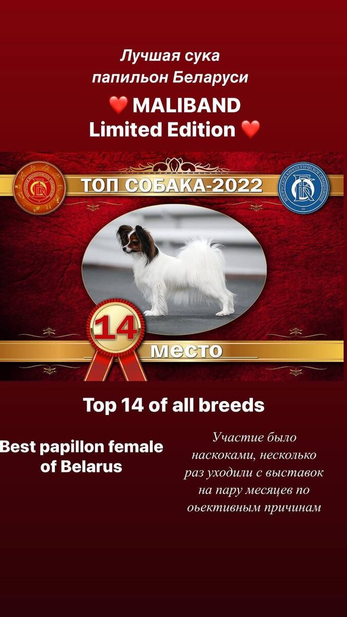 Хорошее воспоминание. Тейка стала 14 в рейтинге собак всех пород Беларуси в 2022 году. Но начали мы только с майя , а не с ноября участие в рейтинге. Поэтому у нас было только полгода , а не год