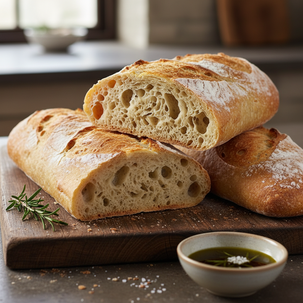 Чиабатта – это итальянский хлеб с хрустящей корочкой и крупными, неравномерными порами в мякише. Её секрет – в высоком содержании воды и минимальном замесе, замененном складыванием.