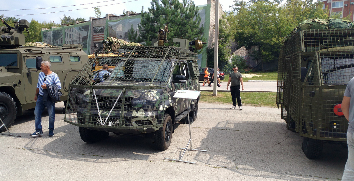 УАЗ Пикап в специальной комплектации с каркасом и тентом, предназначен для выполнения специальных задач, перевозки личного состава, транспортировки вооружения по всем видам дорог для обеспечения подразделений вооруженных сил РФ. При разработке данной версии была проведена доработка грузового отсека под установку каркаса, шкафов боеприпасов, крепление подиума, а также усилен задний бампер под установку буксирного приспособления. Спецавтомобиль может оснащаться крупнокалиберным пулеметом «Корд» 12,7мм или пулеметом «Печенег» калибра 7.62мм. Колесная формула: 4x4 Количество мест: 5 Дорожный просвет: 210 мм Масса снаряженного а/м, кг: 2070 Полная масса снаряженного а/м, кг: 2670 Грузоподъёмность, кг: 600 Длинна корпуса, мм: 4647 Ширина корпуса, мм: 2080 Высота, мм: 1900 Двигатель3М3-409.10. Мощность двигателя, л.с.: 128 Максимальная скорость , км/ч По шоссе: 150 Расход топлива , л. При 90 км/ч: 10,4 при 120 км/ч: 14,5 З.Ы. Снимки сделаны 2 августа 2025 в столице ВДВ.