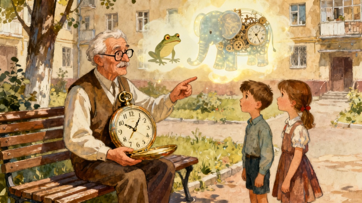 — Вот они и есть, — подмигнул часовщик. — Суперсила — это умение решать слоновые задачи и лягушек. — Слоновые? Лягушки? — хором переспросили дети, представляя то африканское сафари, то болото. Дядя Коля объяснил: