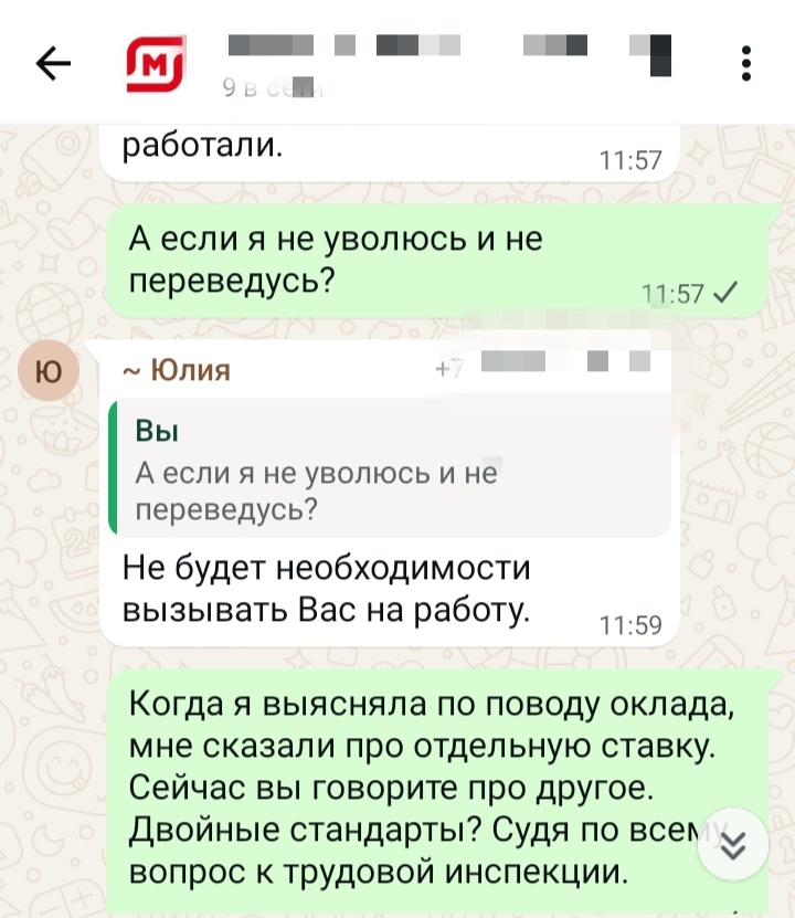 Я работаю в Магните . 15 лет. Меня выбрасывают на улицу без средств к существованию . Пожалуйста, если вы читаете эту статью, подпишитесь, чтобы я смогла монитизировать сайт, потому что правда, 🎺 Хотя, я все равно расскажу, потому что молчать не могу. Дело не в деньгах , которые нужны. Мою должность сокращают. Известили об этом за два ДНЯ, а не месяца, как положено по закону . Поставили перед выбором. Вернее, обязали написать заявление по собственному желанию . Или перевестись в штат. Я работала со свободным графиком 15 лет. Штат для меня неприемлем по многим причинам . Причем утверждают, что действуют по закону . В каком месте ???? Все скрины переписки и ответы выложу завтра , обещаю. Собираюсь обращаться в трудовую инспекцию и прокуратуру . Буду каждый день писать результаты . Боюсь, что попытаются уволить по статье. Подстроив обстоятельства . Могут, знаю. Пока в шоке от происходящего . Если интересно , остаюсь на связи .