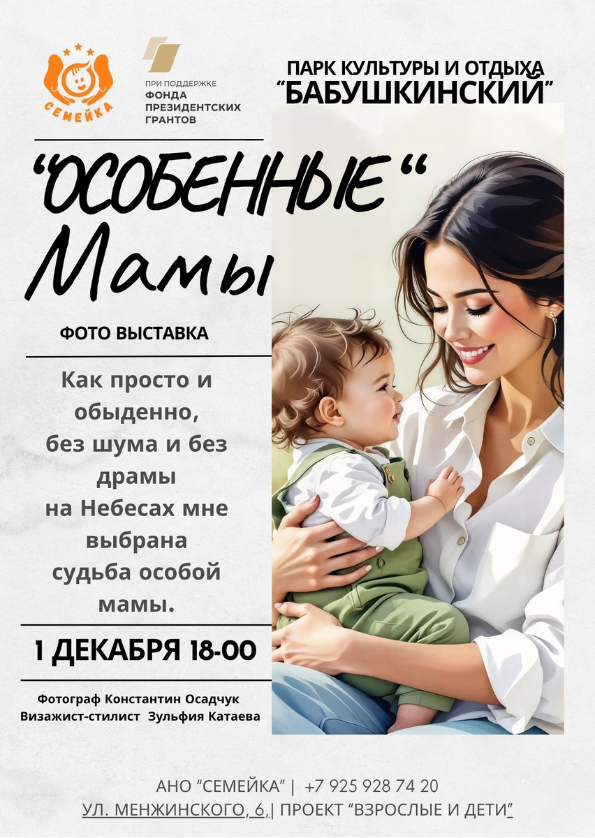 Каждый ребенок уникален, как и его мама. Но мама особенных детей становится не только родителем, но и защитником, адвокатом и другом своего ребенка. Эти люди часто сталкиваются с проблемами непонимания со стороны общества, но, несмотря на это, они продолжают бороться за права своих детей, стремясь создать для них лучшее будущее. А еще они учатся находить радость в мелочах. Каждый маленький успех — будь то первое слово или шаг — становится настоящим праздником. Они поддерживают сообщество, где могут делиться опытом, получать понимание и получать моральную поддержку от тех, кто проходит через подобные испытания. знакомят с трогательными историями женщин, воспитывающих детей с особенностями, а также видят их портреты, приглашают всех желающих на выставку «Особенные мамы: сила любви и веры». Открытие состоится 1 декабря, гости также смогут пообщаться с авторами работ. - Мамы особенных детей — это символ стойкости и любви. Их сила вдохновляет многих, и они учат нас принимать внимание и цени