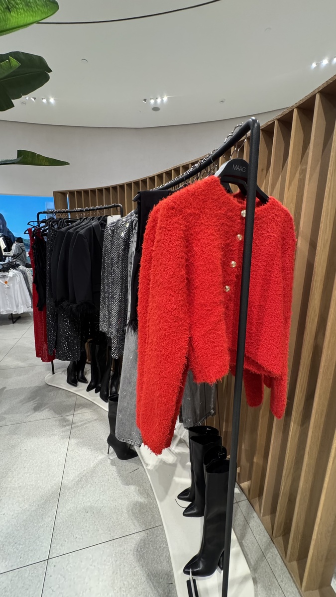 В преддверии Нового года каждая женщина стремится найти для себя самое изысканное платье. Сегодня я поделюсь впечатлениями о новогодней коллекции Maag и продемонстрирую вечерние образы из этой линейки. 2026 год — это год Красной Огненной Лошади по восточному календарю. В коллекции Maag множество вечерних платьев, блейзеров и кардиганов в красных тонах. Пайетки по-прежнему популярны, а люрекс и атлас представлены в большом ассортименте. Искусственная норковая шуба — превосходный выбор для завершения вечернего наряда. В магазине представлен широкий ассортимент моделей различных длин и расцветок. Очень красивый сет из юбки и жакета из твида с пайетками,сумочка серебристая со стразами. Этот наряд идеально подходит для празднования Нового года в изысканном ресторане. Я выбрала бархатное черное платье с асимметричным кроем и удлиненной линией. Разрезы на талии и золотая брошь добавляют платью элегантности и блеска. Чтобы завершить образ, я выбрала браслет-кафф и черные лаковые туфли на кабл