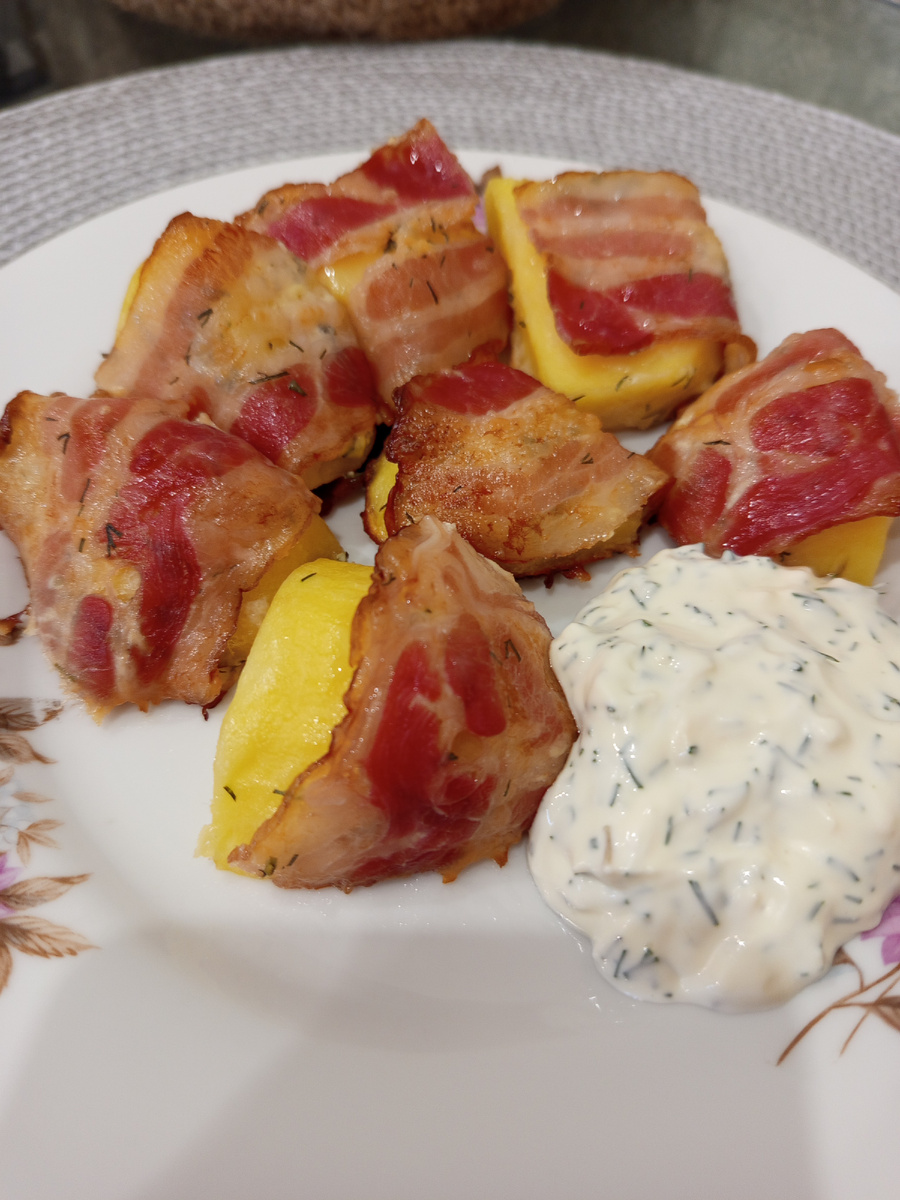 Гарнир или закуска- выбирать тебе. Картошка в беконе.