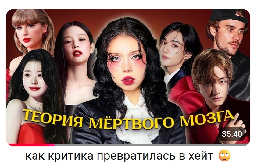 Спрашивается: при чем тут к-поп? Там-то как раз полная свобода слова: нетизены что ни день вываливают на айдолов тонны «шеймингов» за любой проступок. Ну так это просто другая крайность. А результат тот же: критикуешь — значит, ты как те нетизены, которые за ошибку в хореографии или лишний килограмм веса желают айдолу всего самого плохого в жизни. Хейтер, короче. Вот.