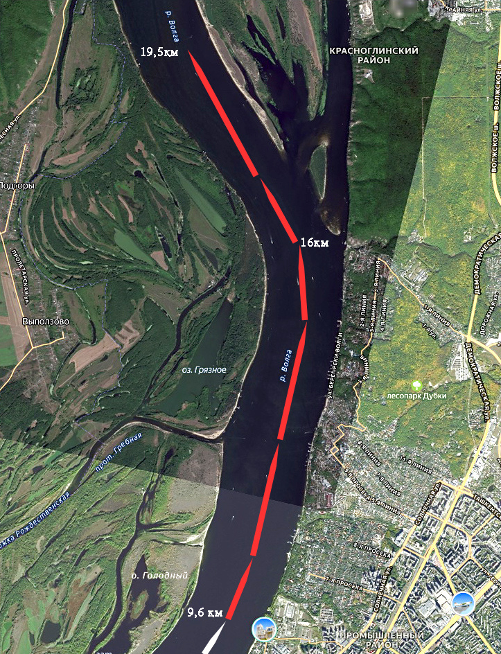 Сегодня мы прошли от четвёртого причала девятнадцать с половиной километров, в следующей статье продолжим плавание в пределах Красноглинского района города Самары.