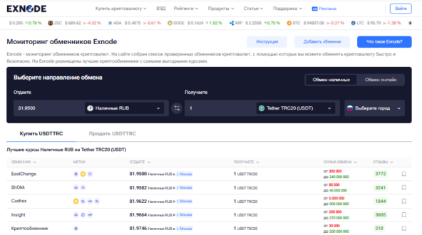 Exnode - сайт мониторинга криптообменников