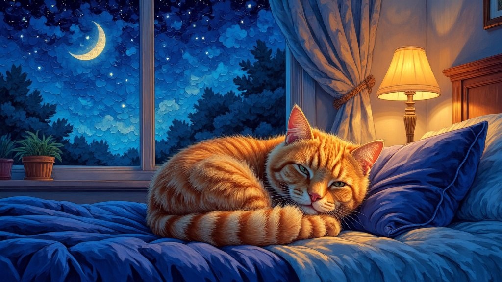 Закрывай глазки, мой хороший. Сегодня был длинный и насыщенный день, и ты славно потрудился. Пора расслабиться и позволить себе отдохнуть, как это делают котики после долгой охоты за солнечными зайчиками. Пусть все тревоги останутся за порогом этой ночи, а тебе приснятся самые тёплые и уютные сны. Ты заслуживаешь самого лучшего отдыха.