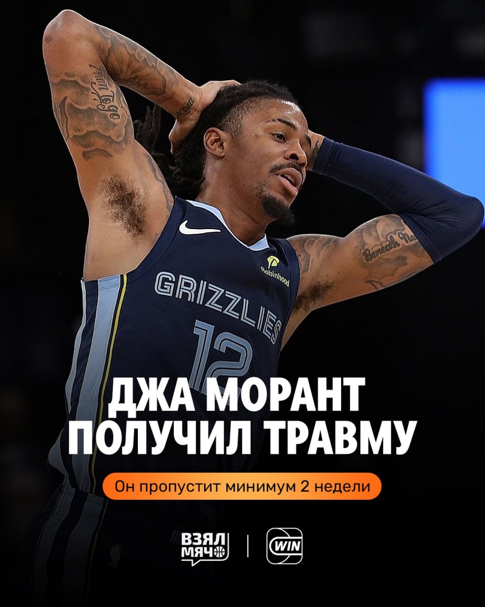 👌 «Мемфис» остался без Джа Моранта Разыгрывающий «Гриззлис» выбыл минимум на две недели из-за травмы икроножной мышцы. Подумает над своим поведением в лазарете и снова заиграет на высоком уровне? 😂 🏀 ПОДПИШИСЬ — ЗДЕСЬ ЖИВЁТ БАСКЕТБОЛ!