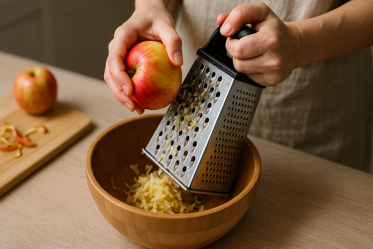 Ничего из серии «перебить в блендере, вскипятить, охладить» — просто что-то тёплое, сладкое и знакомое с детства. Вот в такие моменты я иду на кухню, достаю яблоки и жарю оладьи.