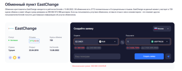 EastChange - сервис для покупки криптовалюты при личной встрече