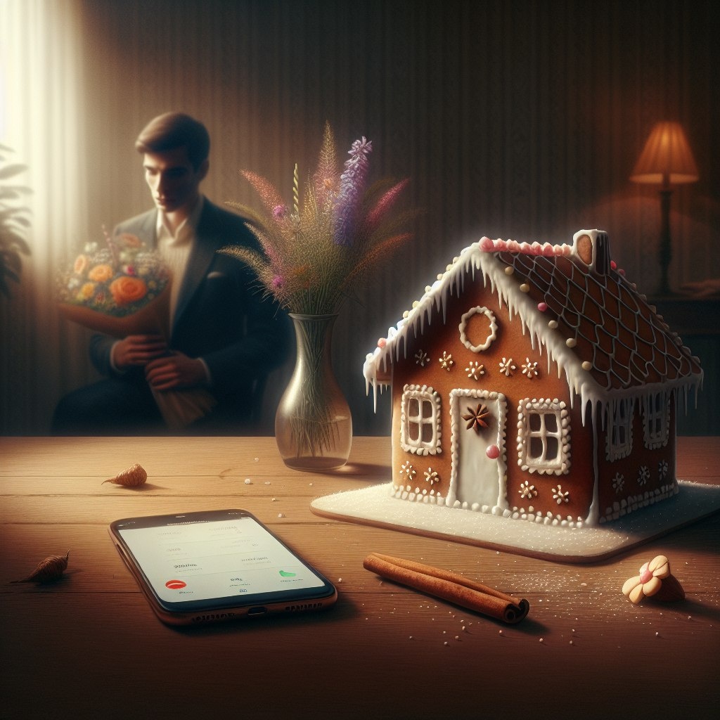# ПРЯНИЧНЫЙ ДОМИК Запах корицы и гвоздики щекотал нос. Лена украшала пряничный домик для мужа, забыв про мерцающий телефон. Подарок к годовщине. Но что-то давило на сердце – тихая, назойливая тревога. Павел обещал приехать к ужину. Обещал, что всё наладится. Но его слова звучали всё слабее. Опоздания на работе, внезапные встречи. Лена чувствовала, как между ними растет пропасть недосказанности. Когда дверь открылась, он стоял смущенный, с букетом полевых цветов. "Прости, задержался. Проект, объемы..." Лена посмотрела на домик с идеальными пряничными стенами и украшениями из глазури. И поняла: этот уютный домик не скроет трещины в их отношениях. А как вы справляетесь с ощущением, что обещания не выполняются?