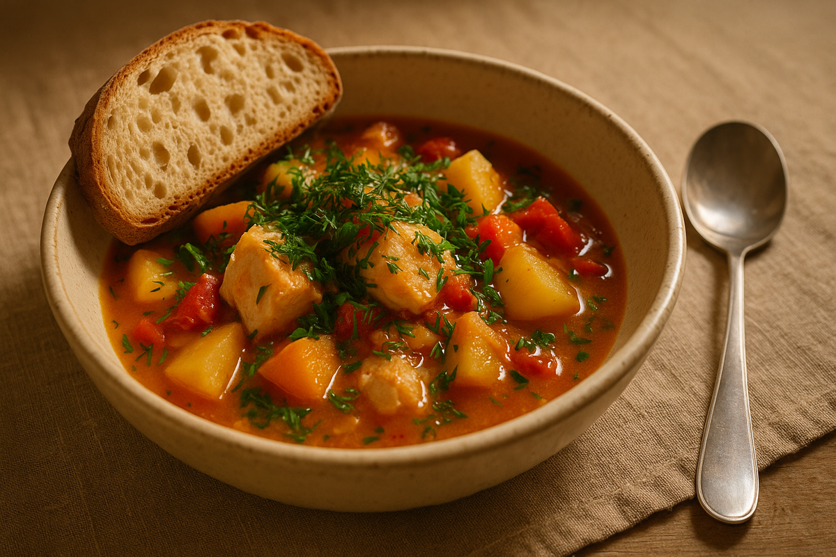 Что-то простое, домашнее, но не скучное. Без жарки в масле, без трёх кастрюль и последующей уборки всей кухни. Вот именно для таких случаев у меня есть рыбное рагу с судаком и овощами.