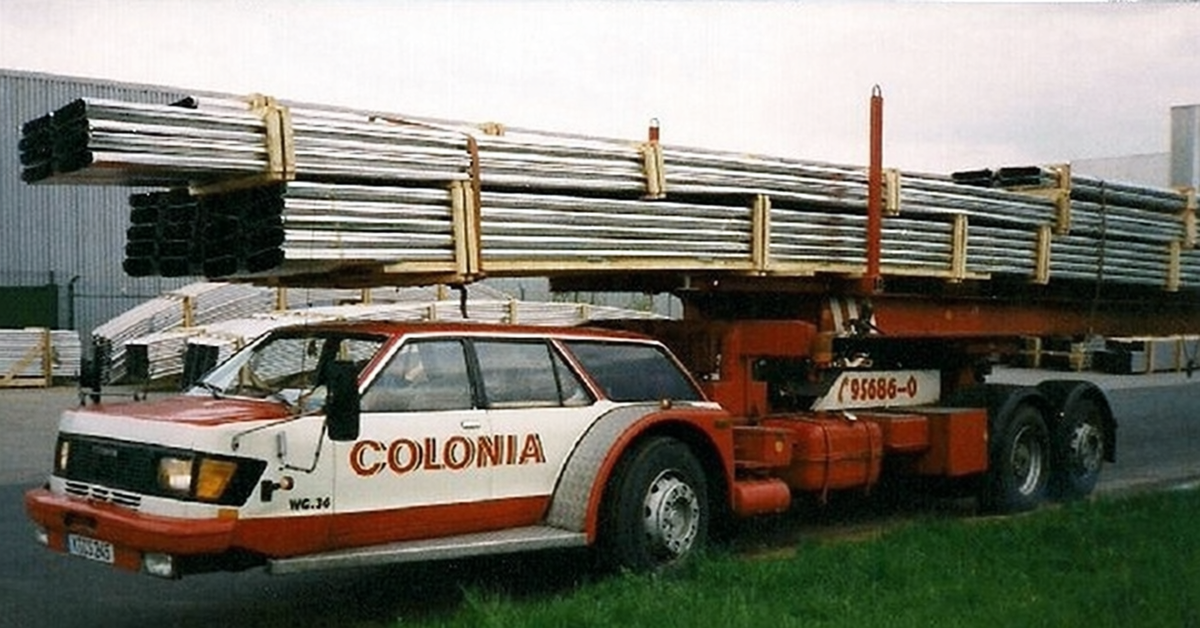 И вот один из таких случаев — история довольно странной, но при этом по-своему гениальной машины, которую собрали буквально «на коленке», но с умом, в одной немецкой строительной компании. Название у неё было — Колония Шнибель Мобил (Kolonie Schniebel Mobil), и звучит оно, согласитесь, даже как-то по сказочному. Но сказка здесь — лишь в названии, а всё остальное — чистая инженерная прагматика. Эту специфическую конструкцию разработали с одной-единственной целью: возить алюминиевые профили и профнастил, длина которых доходила до… готовы? — до 55 метров! И да, это не опечатка. Представьте себе: почти как длина двух стандартных трамвайных вагонов, только в виде одного цельного изделия.
