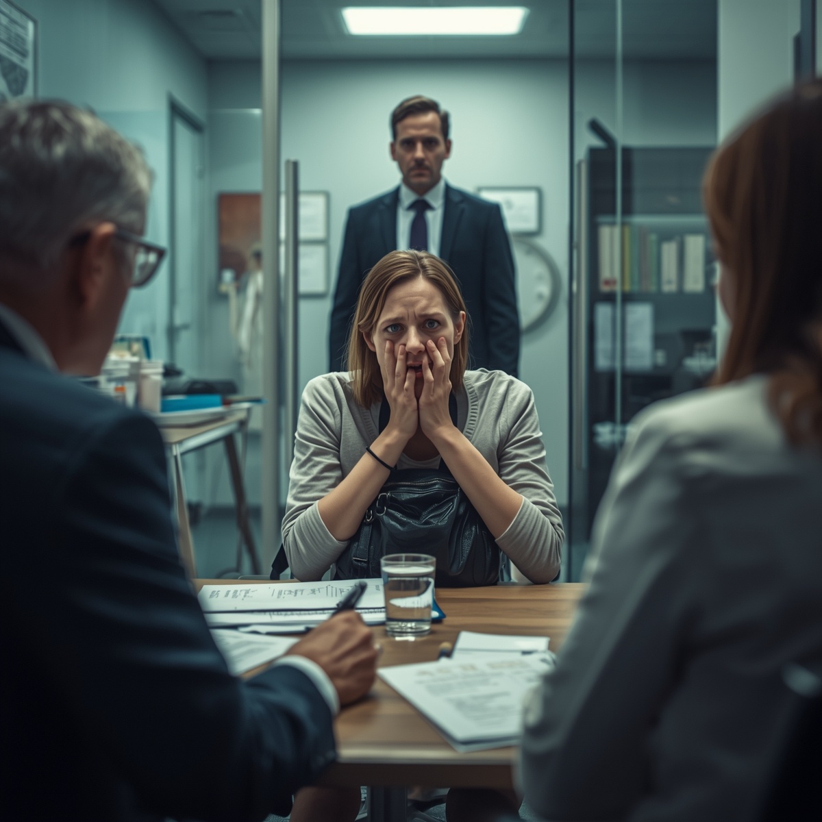 Женщину ввели через десять минут. Анна Викторовна выглядела измождённой - тёмные круги под глазами, нервный тик в углу рта, руки тряслись. Она села на край кресла, сжимая сумочку так сильно, что побелели костяшки пальцев.