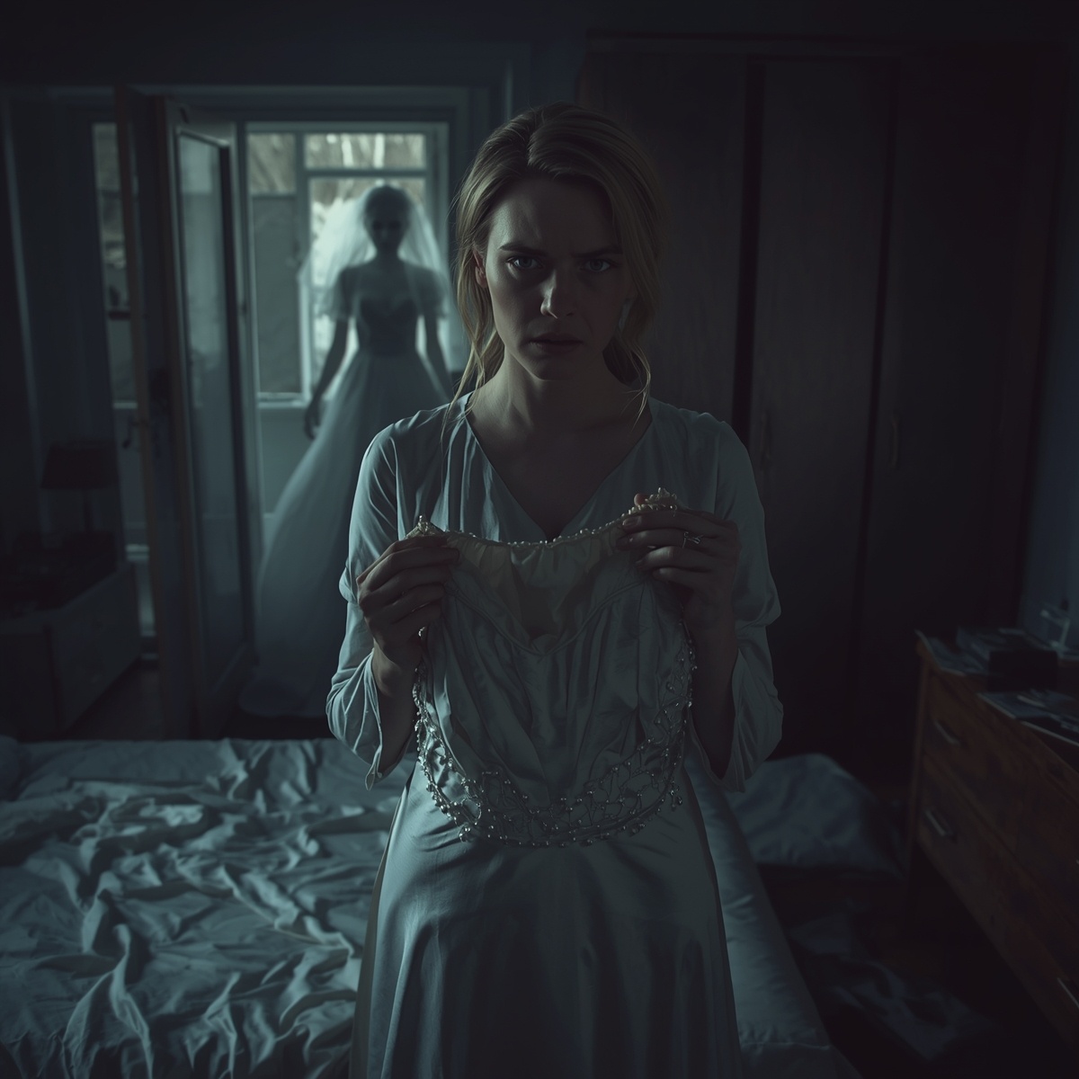 Лена встала, подошла к шкафу. Открыла дверцу. Платье висело на плечиках - белоснежное, идеальное. Но в тусклом свете ночника ей показалось, что на подоле тёмные пятна. Она щёлкнула выключателем. Подол чистый. Показалось.
