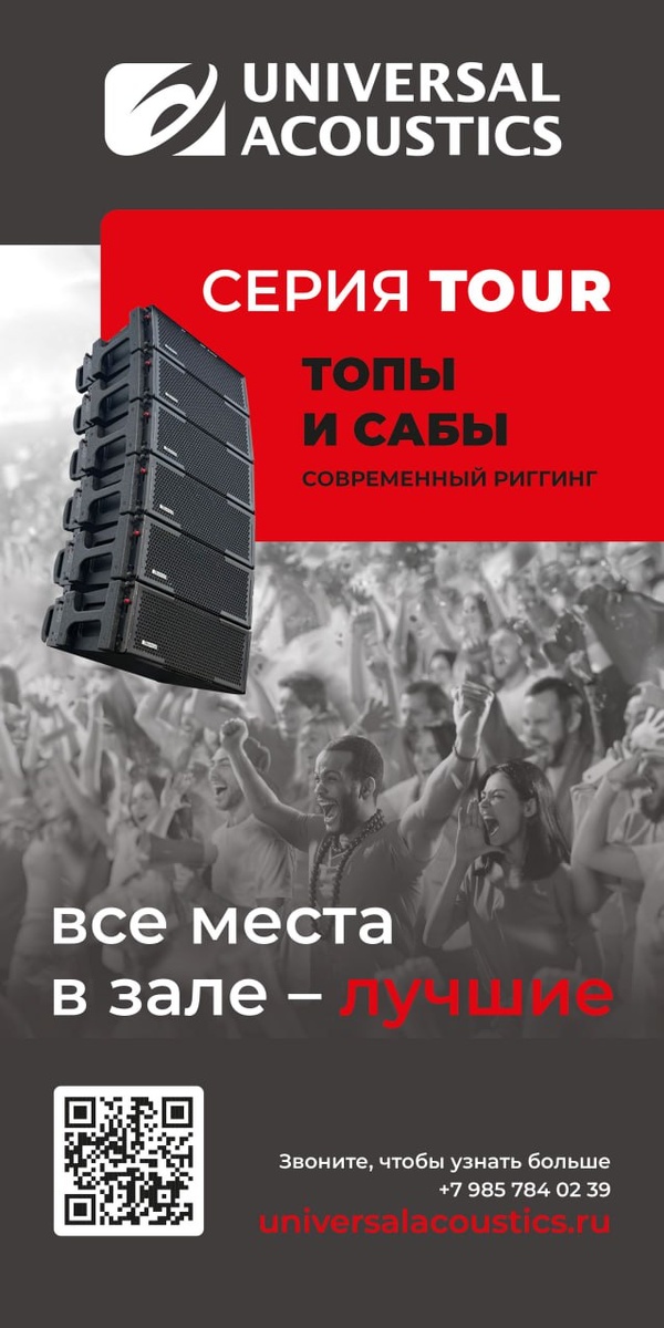 Хоть дворец, хоть шар земной. Коротенько о T10 В каталоге Universal Acoustics “классика” представлена элементами линейного массива малого (Tour Т6, 2х6’’+ 1,4’’) и среднего (Tour T8, 2х8’’+ 1,4’’) формата. Они успешно решают соответствующие задачи и очень удобны в эксплуатации. Неизбежным шагом к совершенству (вашему, дорогие заказчики!) стал выпуск T10, воплотившего следующие важные идеи: — понизить рабочую частоту для более уверенной отдачи в диапазоне до 100 Гц (ценно для объединения с сабвуфером); — увеличить SPL по ВЧ с использованием двух драйверов 1,4’’ (75 мм); — включить в конструкцию СЧ-секцию, чтобы “разгрузить” ВЧ-драйверы и позволить НЧ-динамикам работать в поршневом режиме (до 300 Гц); — и самое важное: получить ровную АЧХ при отклонении от оси направленности АС. Universal Acoustics Т10 — это 3-полосный элемент с массой и габаритами, как у ЛМ среднего формата, но с SPL по ВЧ, как у больших "братьев". Теперь можно озвучить хоть стадион, хоть дворец съездов, хоть шар з