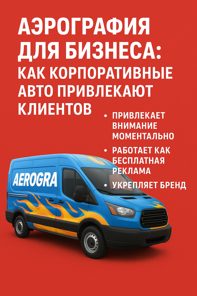 Корпоративный автомобиль — это не просто транспорт. Это реклама на колёсах, которая работает каждый день, даже когда водитель стоит в пробке. Аэрография усиливает этот эффект в разы: машина выделяется, запоминается и вызывает эмоции. Почему аэрография — это мощный рекламный инструмент 1. Привлекает внимание моментально В потоке все авто похожи. А аэрография — это яркий, необычный объект. Люди смотрят, фотографируют, обсуждают. Исследования outdoor-рекламы показывают: брендированные авто получают в 2–3 раза больше внимания, чем обычные наклейки. 2. Работает как бесплатная реклама Один раз сделал — и всё: машина каждый день пересекается с сотнями людей. Особенно эффективно: 3. Укрепляет бренд Аэрография делает автопарк единым и стильным. Компания выглядит солиднее, клиенты — доверяют больше. Что можно нарисовать Главное: машина должна вызывать «вау». Тогда она работает как реклама. Как мы делаем корпоративную аэрографию Коротко: Результат — долговечная, яркая, премиальная аэрограф