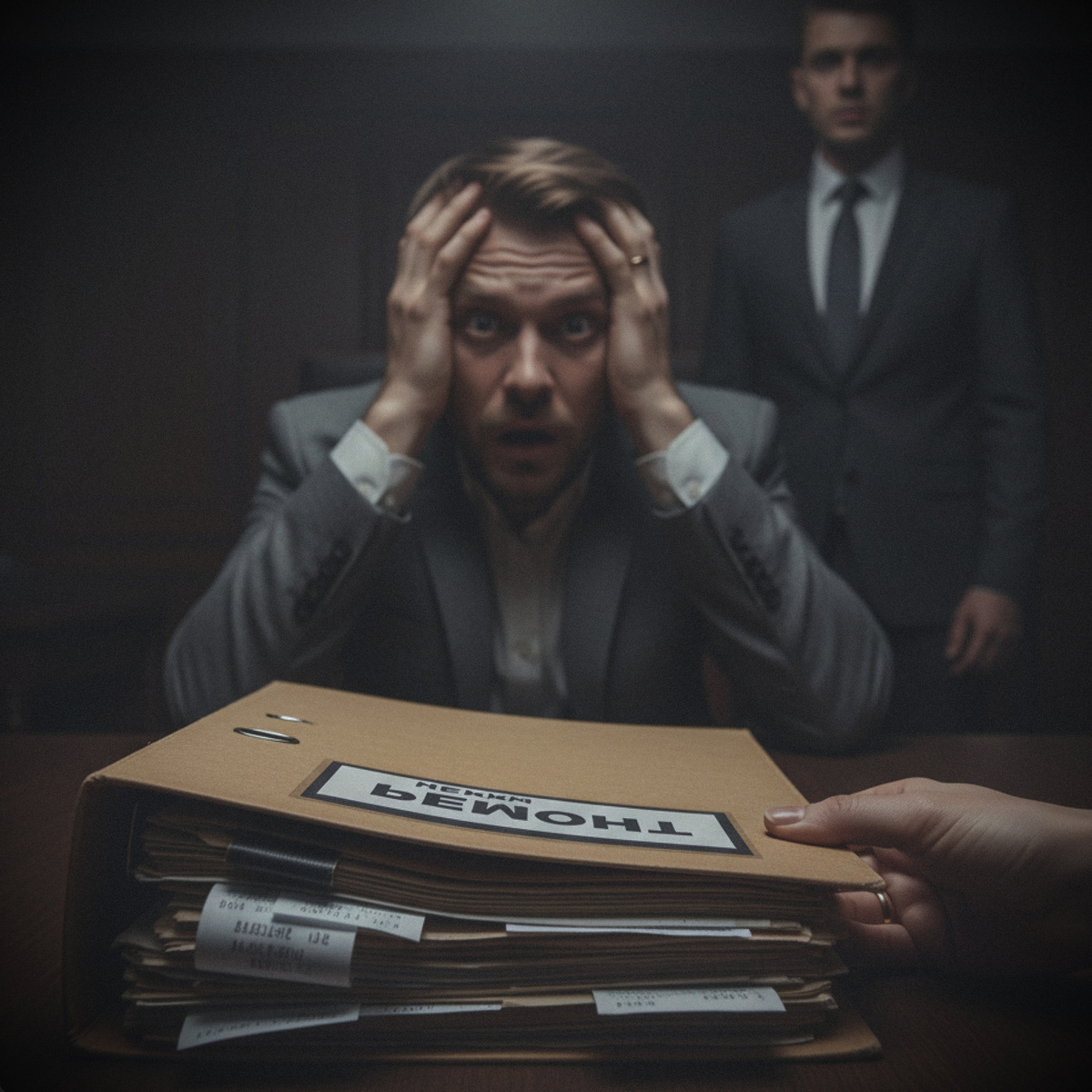Игорь побледнел как мел, его юрист наклонился, прошептал что-то на ухо. Игорь кивнул, но лицо было каменным, губы плотно сжаты.