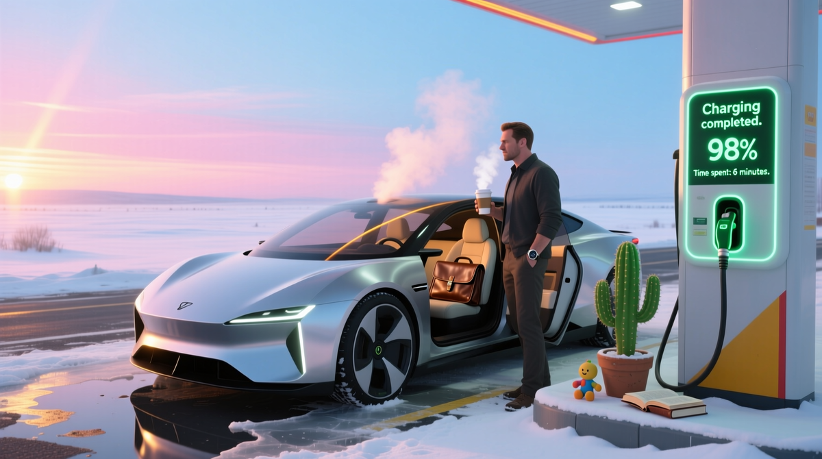 Шесть минут – это меньше, чем заправить полный бак на обычной бензоколонке. Если это правда, то электромобили станут удобнее в дальних поездках, чем машины на топливе.