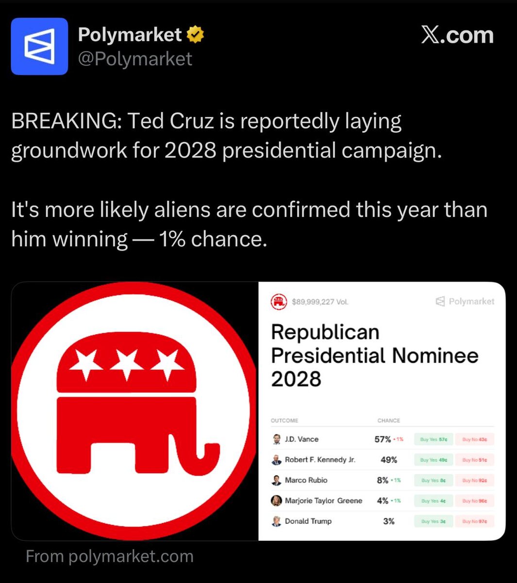 MTG FOUR TIMES more likely to get the 2028 nomination than Ted Cruz – Polymarket