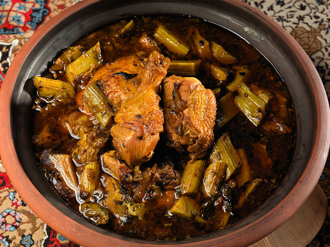 Когда я добавил ревень и я дал повариться минут 15, а потом просто выключил казан и дал ему остыть градусов до 60, после чего, перед подачей, еще раз нагрел. Все это было спасением для структуры курицы и хрупкого ревеня.