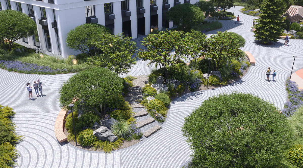 Когда двор освобождается от машин, появляются возможности для настоящей сценарной архитектуры. Можно проектировать красивые прогулочные аллеи, амфитеатры, детские площадки, спортзоны, зелёные островки, арт-объекты. И самое главное — появляется возможность создавать живую среду, а не «место, через которое нужно быстро пройти».