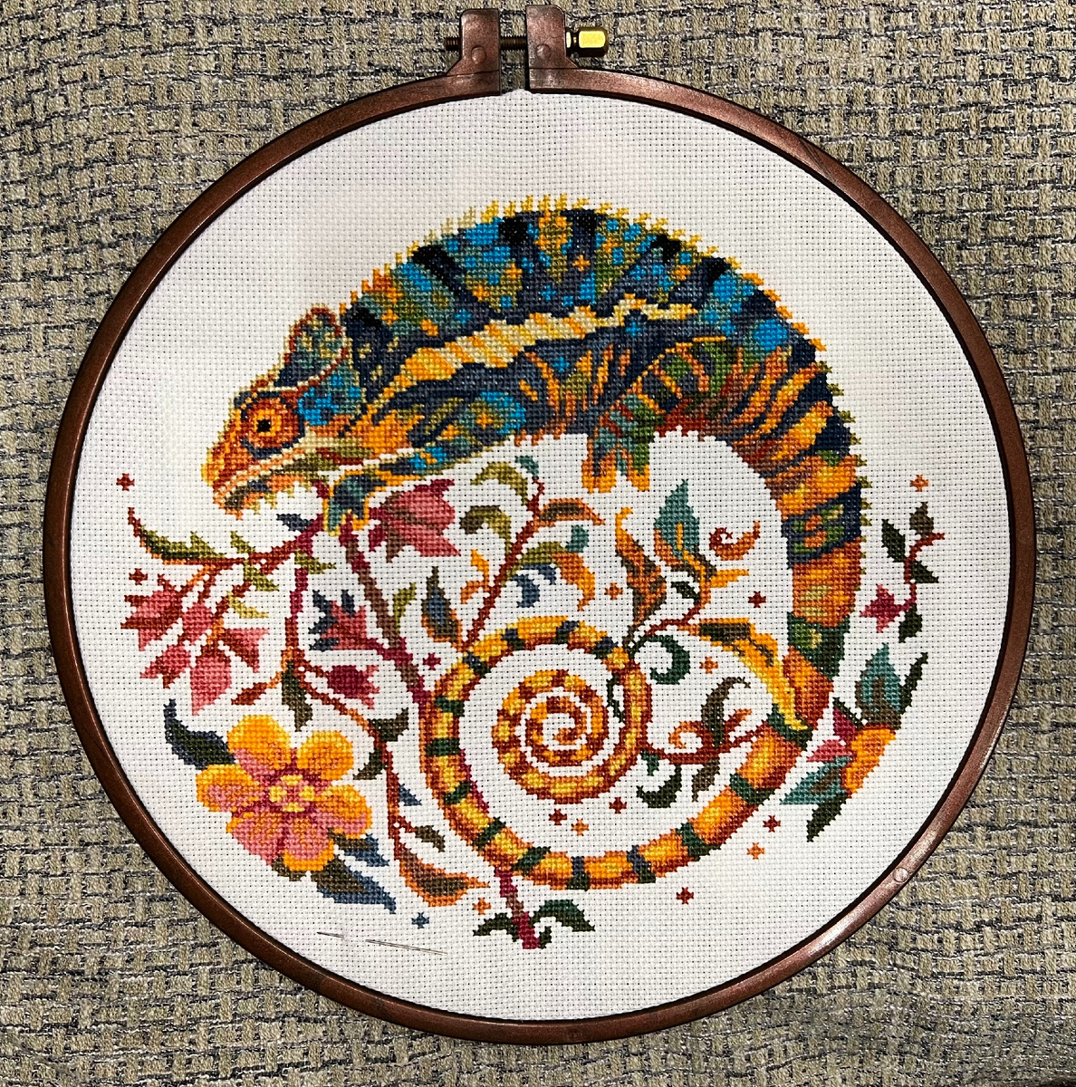 Мой хамелеон перевалил за экватор! И у меня снова чешутся руки всё перешить. Решаем судьбу вышивки вместе!