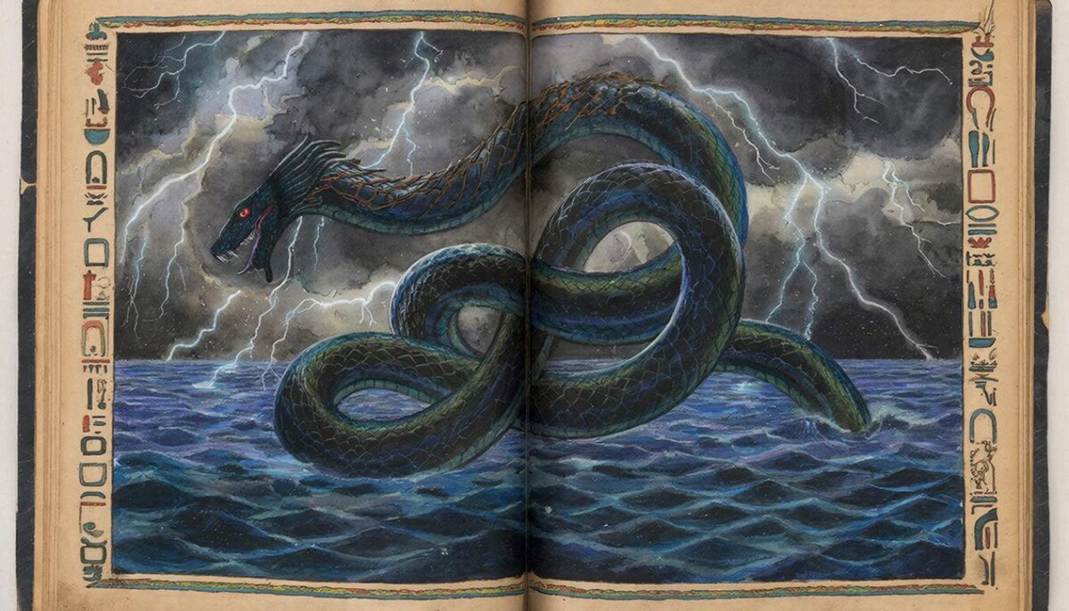 - Символ Хаоса: Представление Апопа как огромной рептилии подчеркивает идею отсутствия четкой структуры и стабильности, где господствуют случайность и неупорядоченность.