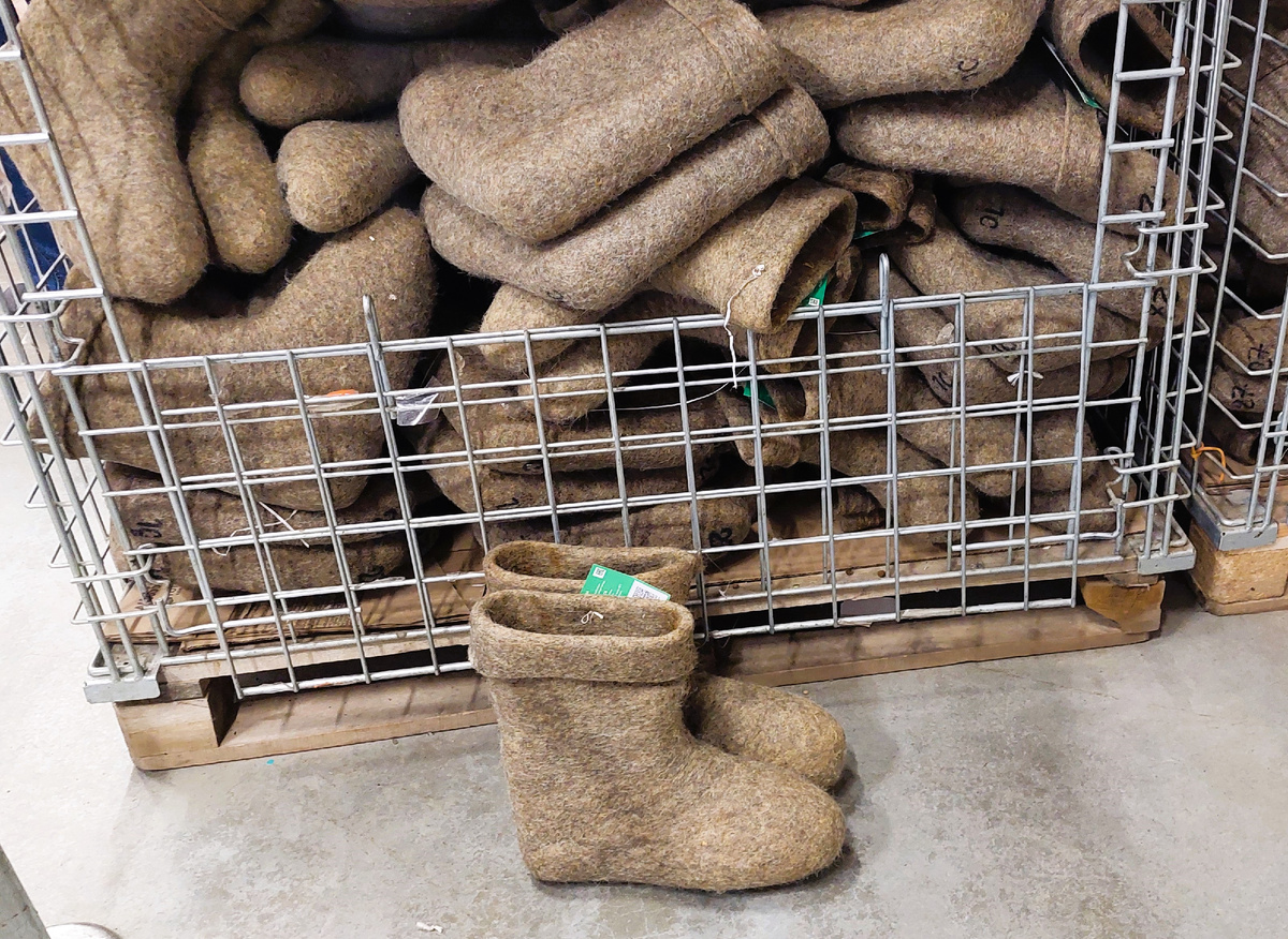 Кроме валенок в наличии утепленные ботинки на холодную погоду, галоши с меховой опушкой и полусапожки.