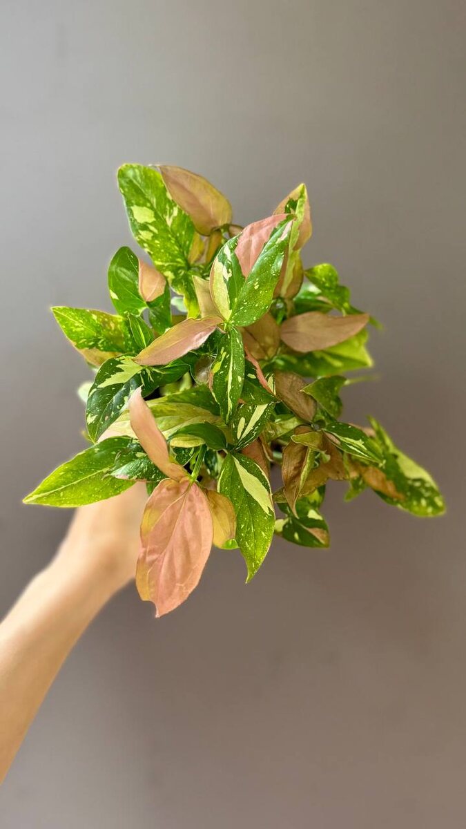 Из сингониумов в коллекции у меня сейчас всего два (хотя были детсятки сортов). Один - империал вайт, его часто показываю. А второй - ред спот триколор 💔 Купила его осенью 2021 года. Микро черенок, срез макушки с одним раскрытым листом и одним формирующимся аж за 500₽ (дада, тогда они так и стоили). Как же я удивилась, когда у этой крошки в пазухе нашла здоровенного мученистого червеца 🤦♀️ Как вы поняли, отношения у нас сразу не сложились. Рос он тоже не особо, то вытагивался, то листья мельчил. А пару месяцев назад начеренковала, налила воды и закинула подальше. С появлением хойного стеллажа встал вопрос - выкинуть эти ростки или посадить. Решила дать шанс-воткнула в один горшок и вот такой теперь у меня красавец. Ну разве поднимется рука на такого?? Каждый день глаз радует😍 Yu_jungle 🌱