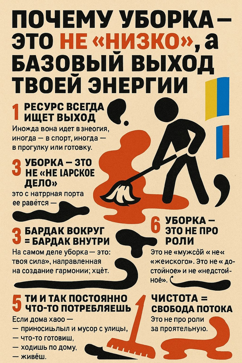 это наведение порядка вокруг себя.🔹 2. Уборка — это не «не царское дело»