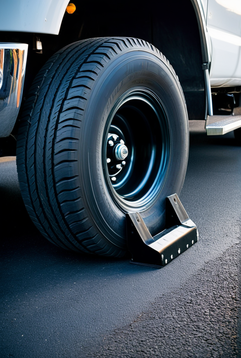 - Прижмите стопор плотно к шине‚ чтобы не было зазора. Для грузовиков используйте два клина.