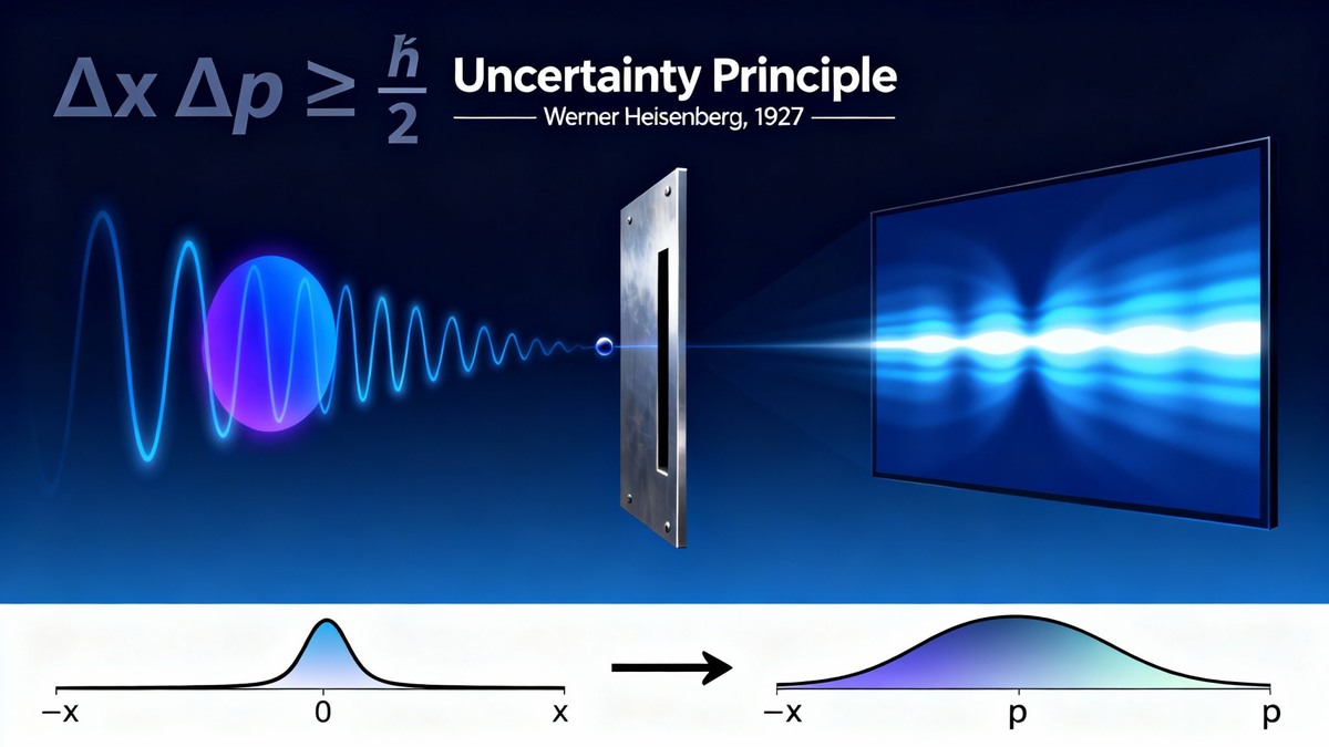 В 1927 году немецкий физик Вернер Гейзенберг сформулировал принцип, который стал одним из краеугольных камней квантовой механики. Принцип неопределённости Гейзенберга гласит: существуют пары физических величин, которые невозможно одновременно измерить с произвольной точностью. Самый известный пример — положение и импульс частицы. Чем точнее мы определяем, где находится частица, тем менее точно мы можем знать, с какой скоростью она движется, и наоборот.