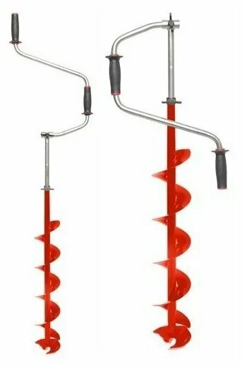 - Бензиновый (мото-бур) — самый быстрый, но шумный и требует топлива. Rybolov.ORGВес и длина шнекаТяжёлый бур труднее держать, особенно при долгом бурении. Длина шнека влияет на глубину, на которую можно пробурить лунку. ПН+1РукоятиМо