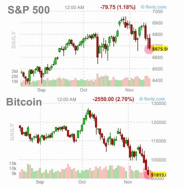 📉 Крипторынок на распутье: Биткоин у $100K, а акции США падают