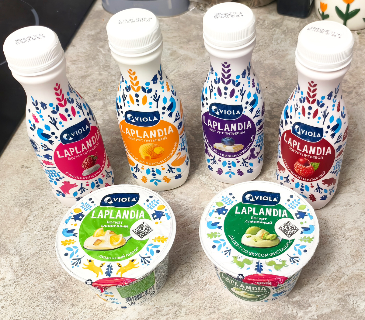 Всем привет! Сегодня будет небольшой обзор на йогурты и плавленный сыр от бренда Viola. Заинтересовали необычные вкусы у йогуртов и сырная новинка. Заказывал на маркетплейсе. Йогурты в пределах 80-90 рублей, а сыры обошлись по 150. Изготовитель: ООО "Виола", г. Санкт-Петербург. До этого я думал, что они делают только плавленный сыр. Начну пробу с йогуртов. Первый вкус черника с белым шоколадом. Необычно, не правда ли? Бутылочки по 260 граммов. Вообще, мне кажется дороговато по 90 рублей за такой объем. Состав нормальный. Ароматизаторы присутствуют, но есть также черника и шоколад. Визуально покажу один йогурт. Он густой, с кусочками черники. Остальные примерно такие же, различаются только по цвету и наличию каких-либо ягод или фруктов. На вкус обычный черничный йогурт. Он вкусный, но где белый шоколад? Я брал этот йогурт исключительно из-за него. В общем как обычно маркетинговый ход, на который я повелся. Малина с сыром маскарпоне. Ещё один интересный вкус. В составе малина