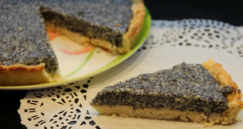 Ингредиенты: Тесто: - 150 г сливочного масла - 60 г сахара - 200 г муки - 1 желток - ваниль - сода, гашеная уксусом Маковая начинка: - 100 г черного мака - 50 г сахара - 50 г мелкого изюма - 0,5 л молока Приготовление: Сливочное масло растереть до пены, затем добавить желток, сахар, ваниль, просеянную муку и соду, гашеную уксусом. Хорошо перемешанную массу выложить в форму и покрыть сверху слоем приготовленного мака. Из остатков теста сделать узкие полоски, которые положить переплетом на мак. Сверху смазать желтком и печь на среднем огне. Приготовление мака: мак залить кипятком, осторожно снять всплывшие и воду слить. Затем варить мак с молоком, сахаром и мелким изюмом до тех пор, пока масса не размякнет. Когда смесь остынет - протереть.
