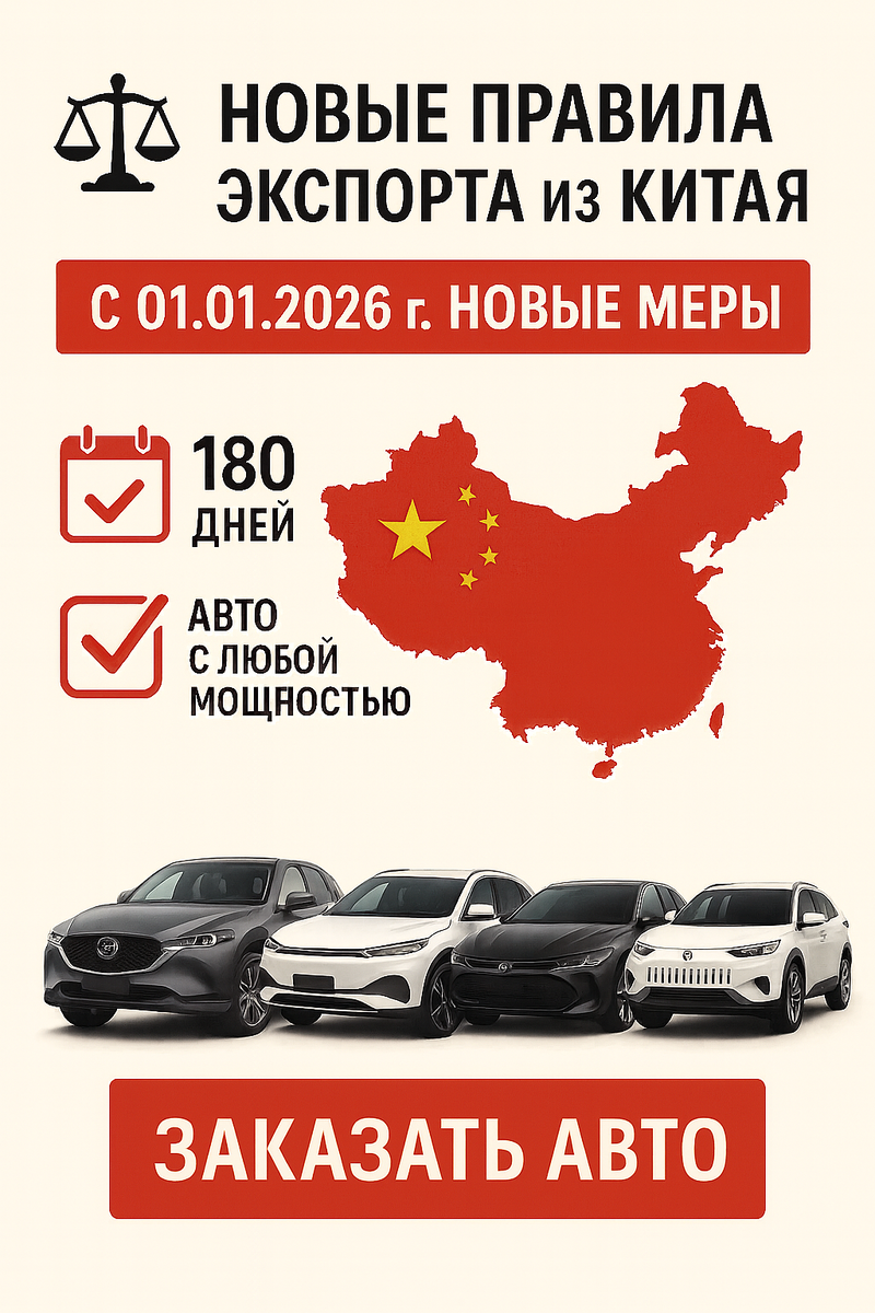 👉Заказать авто С 01.01.2026 — регистрация в КНР 180 дней обязательна перед экспортом.