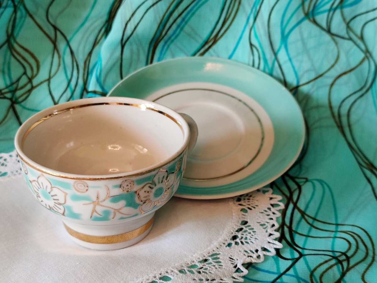 И возвращаясь к фото. В сложно-бирюзовом цвете. Начало ему положила эта мини-кофейная пара из Довбыша. Для которой попался идеальный бирюзовый фон. А больше его никуда и не пристроить, только к такой же бирюзе. И блюдце тоже зашло в композицию, а вот чашка лишней оказалась.
