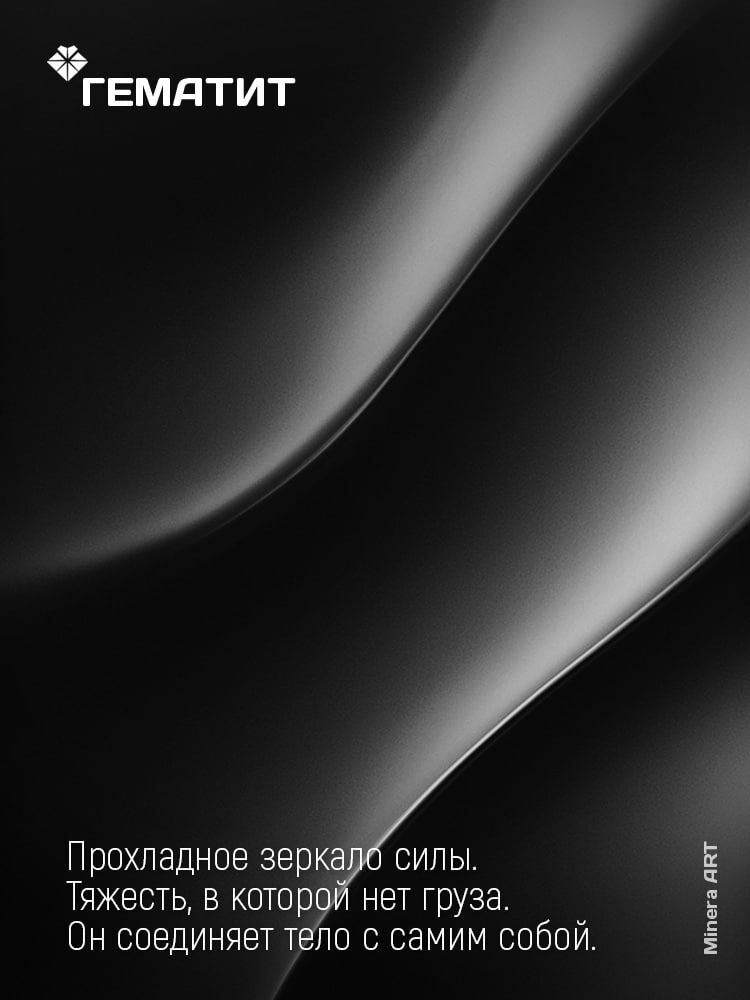 Гематит — тяжёлый. И в этом его суть. Он сразу даёт ощущение веса — в руке, в теле, в внимании. Холодный, гладкий, почти металлический, но не скользкий. Когда берёшь его, будто что-то внутри выпрямляется. Он не поддерживает — он собирает. Без лишних слов. Это не камень «чтобы украсить». Это камень — чтобы вспомнить про опору. Ты держишь его — и будто сама становишься чуть точнее. Не выше, не громче. Просто на месте. ___________ Minera ART — направление, в котором мы пробуем почувствовать каждый минерал — и делимся результатом в своей группе.