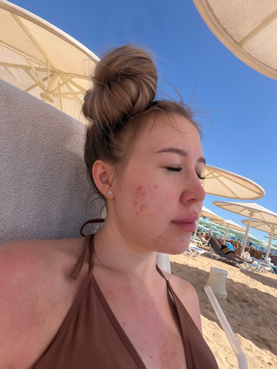 я сегодня на пляже с 8 утра и думала, что до купания у меня, как обычно, дело не дойдет смотрела нас всех, удивлялась, как они плавают в прохладной воде но потоооом… наступила такая жара, что я все же решила охладиться 🌊 в итоге вода была такая кайфовая, я прям поныряла, поплавала, а еще здесь вода такая прозрачная, а дно светлое и все-все видно в общем, мое мнение о недостаточно теплом море изменилось