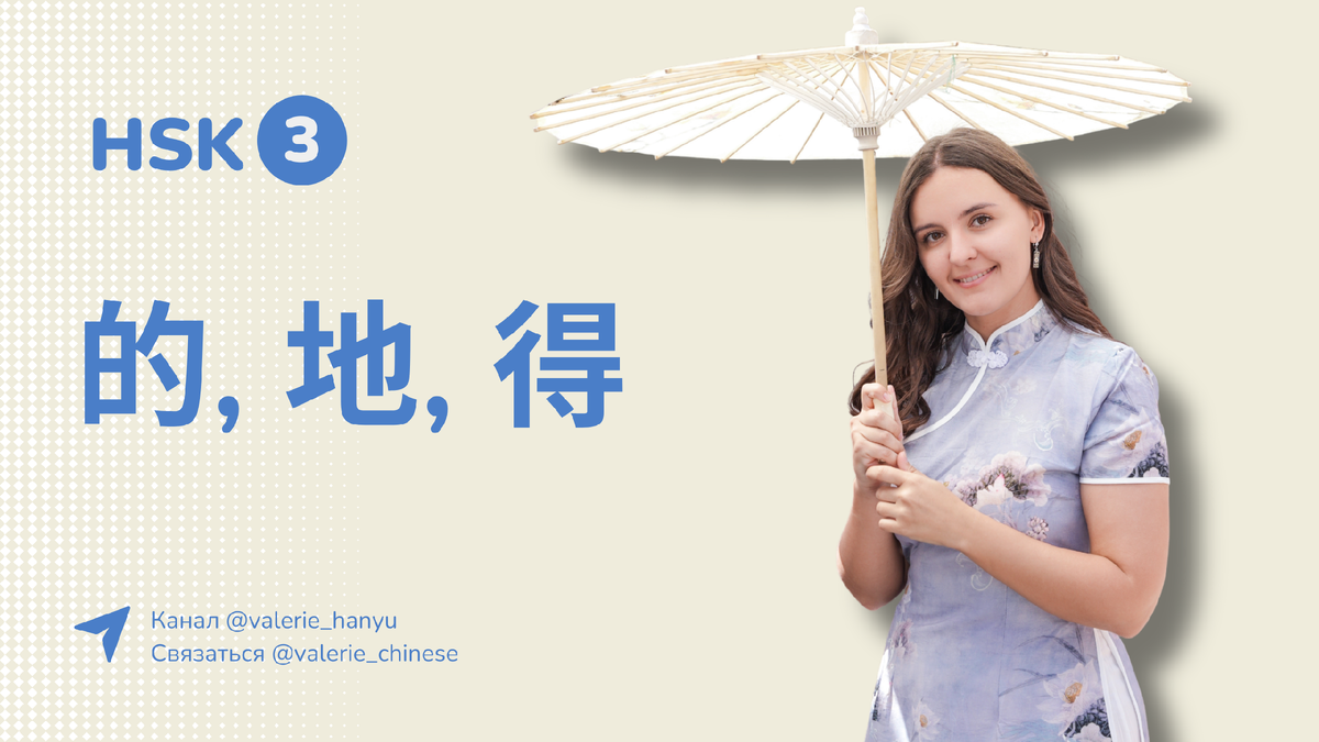 В китайском языке есть три часто встречающиеся частицы, которые звучат одинаково — 的 (de), 得(de) и 地 (de). Они играют разные роли в предложении, и понимание их функций помогает говорить и писать правильно. В этой статье мы подробно разберём каждую частицу, приведём множество примеров и упражнения для практики. Использование: После прилагательного: 漂亮的衣服 — красивая одежда После существительного (принадлежность): 我的书 — моя книга После словосочетания: 努力学习的孩子 — ребёнок, который усердно учится Примеры: 这是我朋友的手机。 — Это телефон моего друга. 北京的冬天很冷。 — Зима в Пекине холодная. 她是一个很聪明的学生。 — Она — очень умная ученица. 我喜欢你写的故事。 — Мне нравится история, которую ты написал. 那是我们学校的老师。 — Это учитель нашей школы. Использование: 1. Степень действия: 他跑得很快。 — Он бегает быстро. 2. Реакция или состояние после действия: 累得不想说话。 — Настолько устал, что не хочется говорить. Примеры: 他说得很好。 — Он хорошо говорит. 孩子们高兴得跳了起来。 — Дети так обрадовались, что подпрыгнули. 他笑得很开心。 — Он радостно смеется. 她累得站不起来。 — О