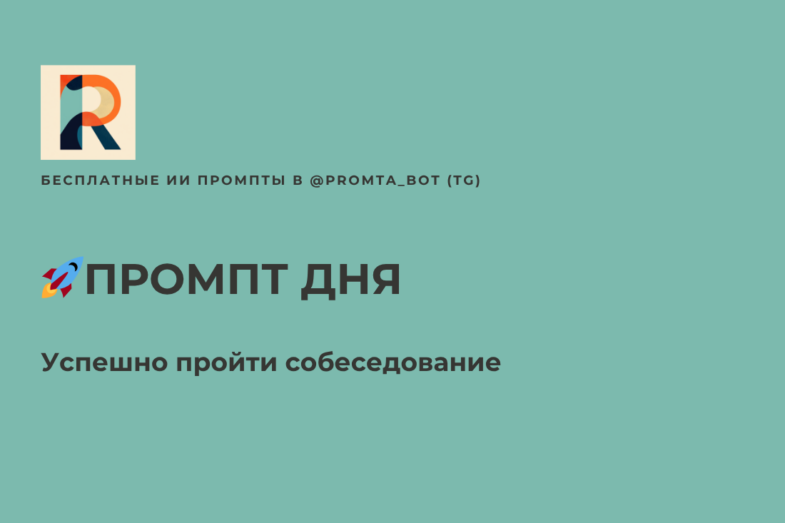 Но некоторые отказы мне просто были непонятны. Говорят, что не впишусь в коллектив, или что-то про "культуру". Ну а некоторые вообще ничего не писали. Такое я осуждаю. Редакция взяла мой кейс на шеринг, поэтому делюсь результатами. Попросил @promta_bot промпт для подготовки к собеседованию. Спрашивают: «Расскажите о своем самом амбициозном провале»