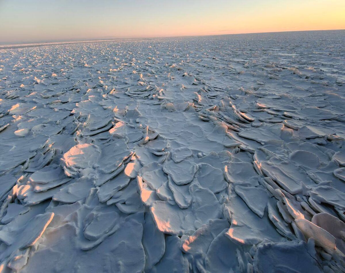 «Чешуя дракона»: сейчас в Енисейском заливе можно увидеть лёд вот такой необычной формы — он напоминает «чешую