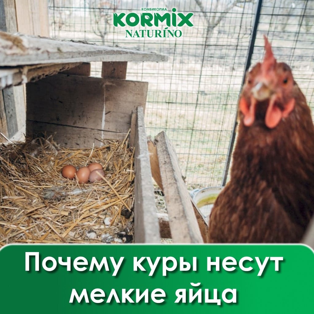Почему куры несут мелкие яйца Птицеводы часто сталкиваются с проблемой, когда куры несут мелкие яйца, а каждое яичко весит в два раза меньше обычного. При этом вместо веса 70 г владелец поголовья обнаруживает яйца весом в 35 г. Такое положение дел может быть вызвано: неправильным уходом, возрастными изменениями, несбалансированным рационом, заболеваниями или особенностями породы домашней птицы. В новой статье рассмотрим причины мельчания яиц, возможности решения проблемы, а также правильный рацион питания курицы: https://clck.ru/3QNYgj #KormixNaturino