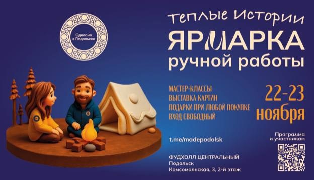 ✨ 🌿 Приглашаем участников на ярмарку «Тёплые истории» Это событие о тепле, свете и вдохновении — о тех самых вечерах с книгой, чаем и свечами, когда хочется окружить себя красивыми и душевными вещами. На ярмарке вас ждут: 🎨 выставка картин от школы Grafika ☕️ фудхолл и творческая атмосфера 🎁 подарки и активности для гостей 📅 Когда: 22–23 ноября, 10:00–20:00 📢 Следите за новостями проекта и анонсами участников в Telegram: @madepodolsk Присоединяйтесь к проекту «Сделано в Подольске» и станьте частью тёплой истории 🚫 Возраст: 0+ 🏢 Фудхолл Центральный 📍 г. Подольск, ул. Комсомольская, д. 3 💰 Вход свободный❗️ ⭐Поддержать канал голосом 🍰Где поесть в Подольске ✅ Мероприятия Подольск https://dzen.ru/id/66ed500f7b5671493eca3fd6 http://vk.com/podolsk_events http://dzen.ru/podolsk_events