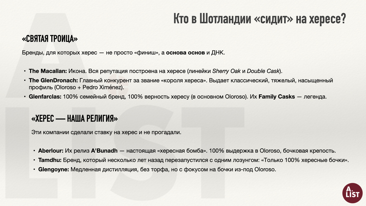 Поэтому хересные бочки для виски — это специальный, а не «аутентичный» продукт, хотя и бывают исключения, но это больше небольшие, лимитированные выпуски.