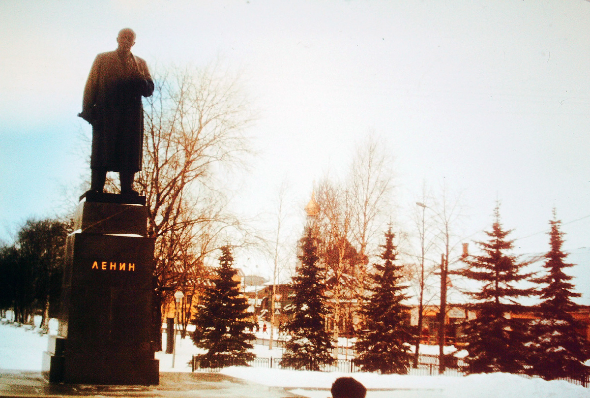 На снимке 1986 года памятник Ленину, рядом с которым когда-то росли ели. Появились они, судя по старым снимкам, значительно позднее памятника. Может кто-то помнит, в каком году их высадили, а в каком срубили?